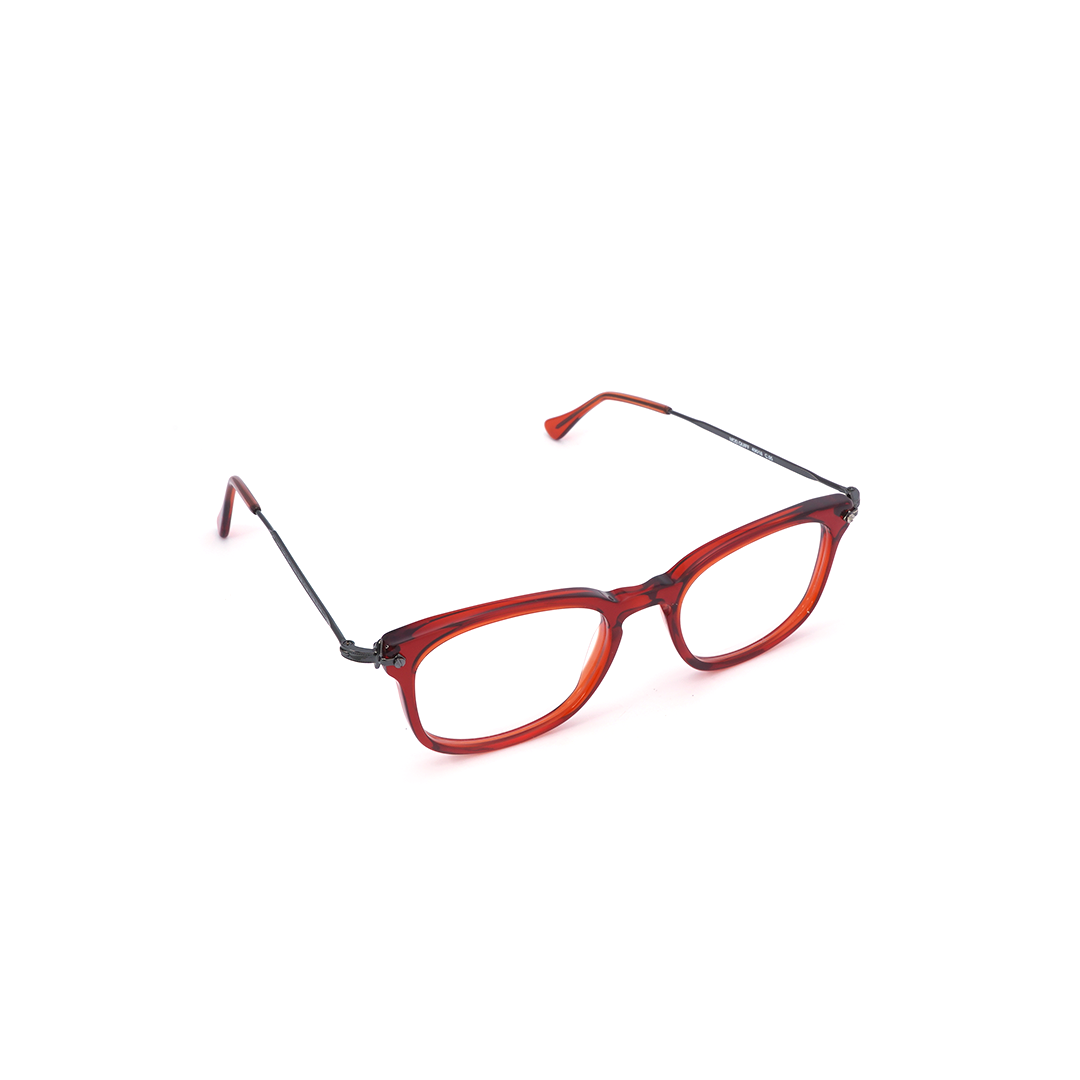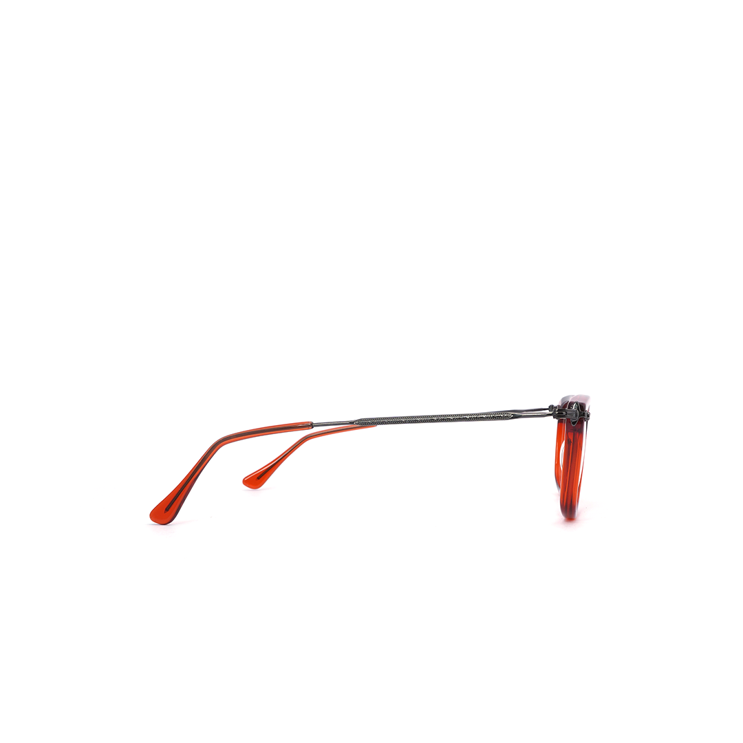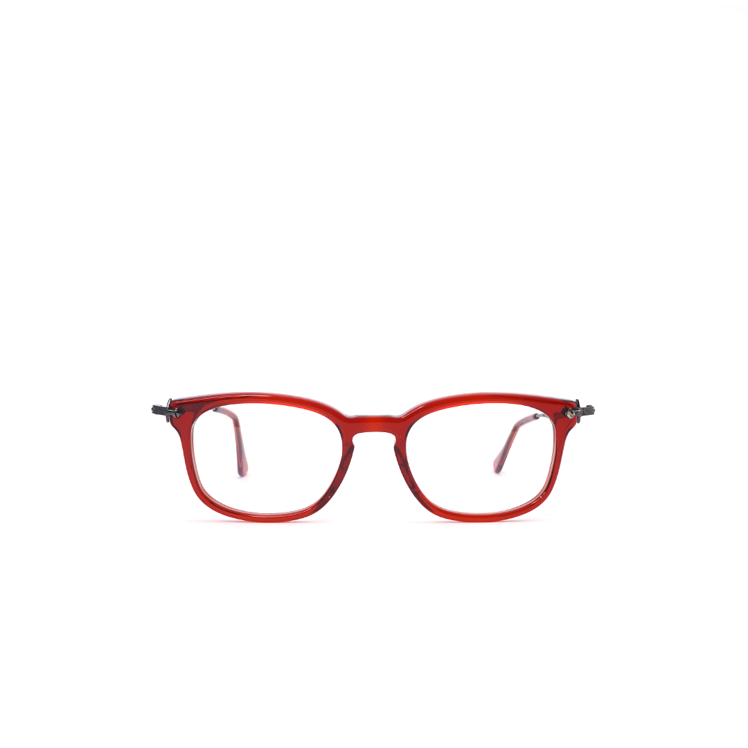 Armazón en color rojo con plateado y lente cuadrado, hecho a mano en Italia.