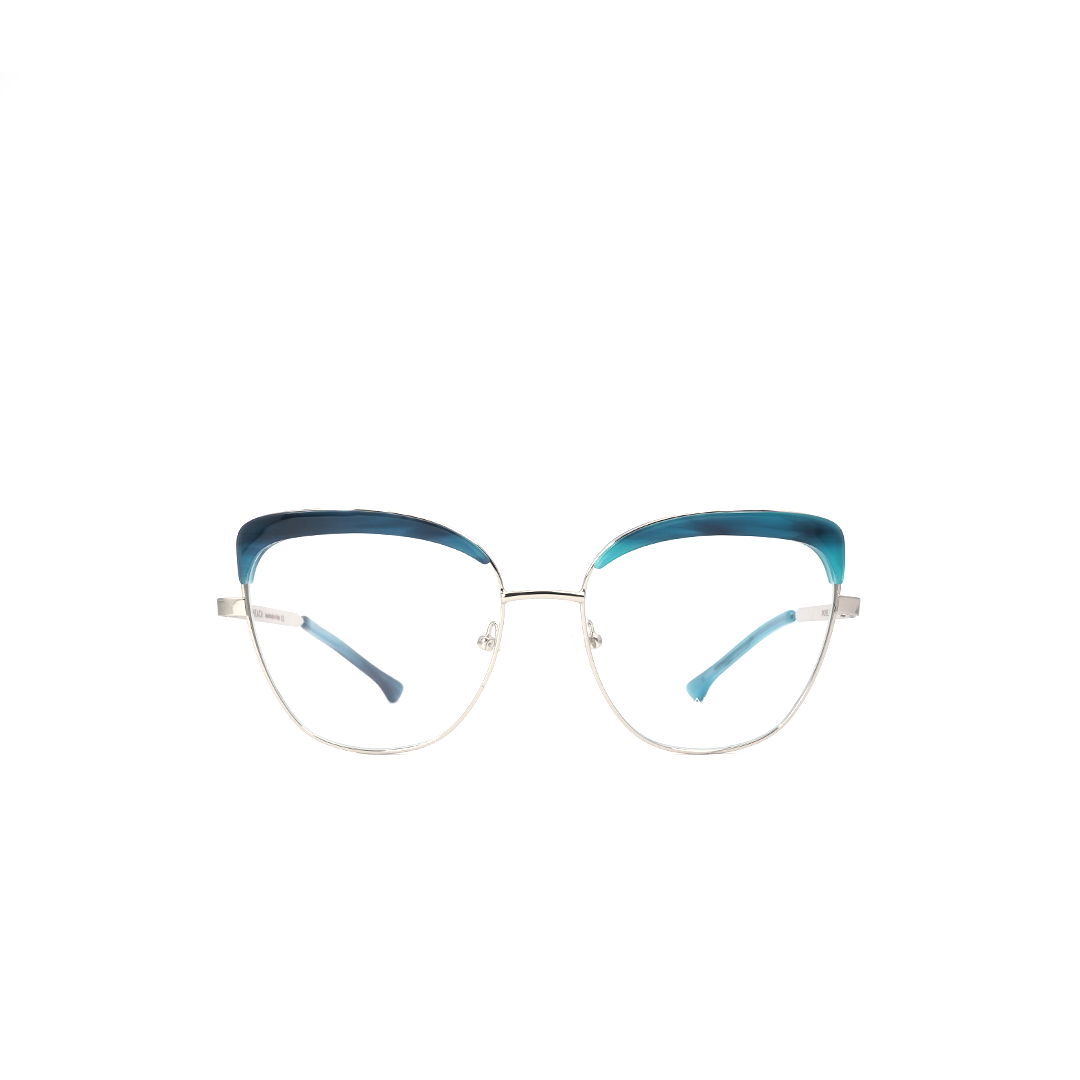 Armazón tipo browline en color azul, hecho a mano en Italia.