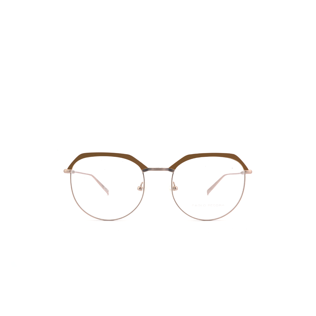 Armazón estilizado con lente circular en color café, hecho a mano en Italia.