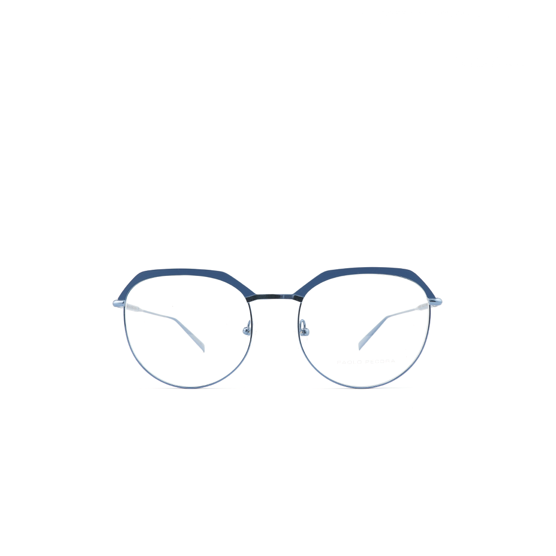 Armazón estilizado con lente circular en color azul, hecho a mano en Italia.