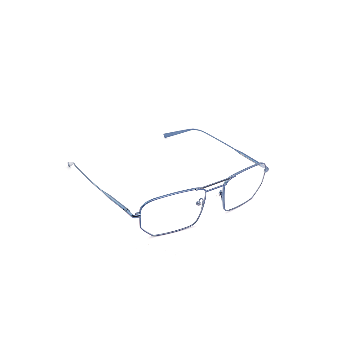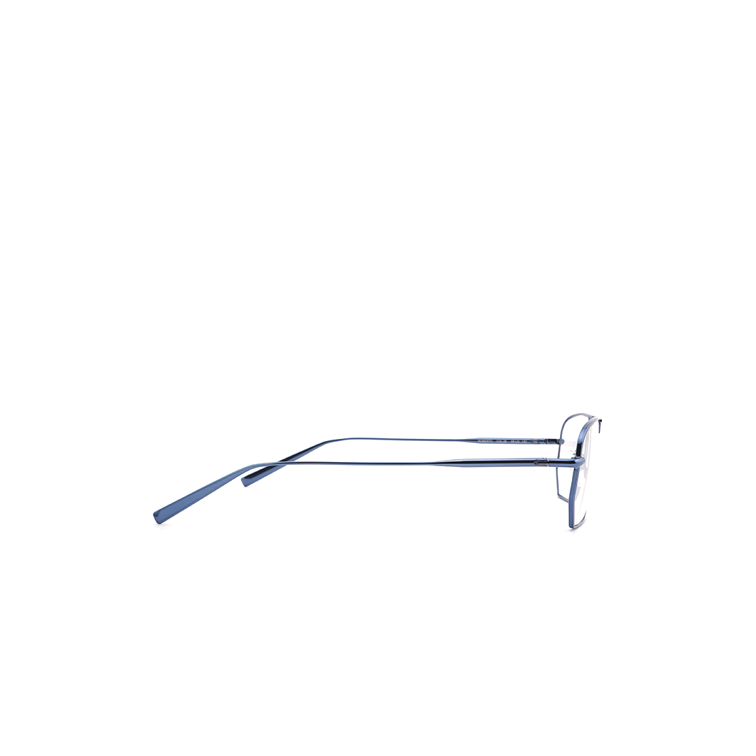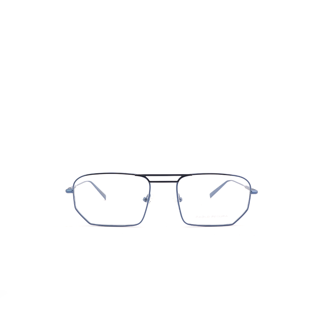 Armazón con puente doble y marco estilizado en color azul, hecho a mano en Italia.