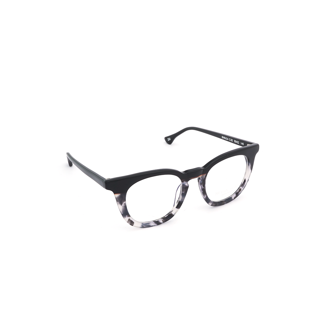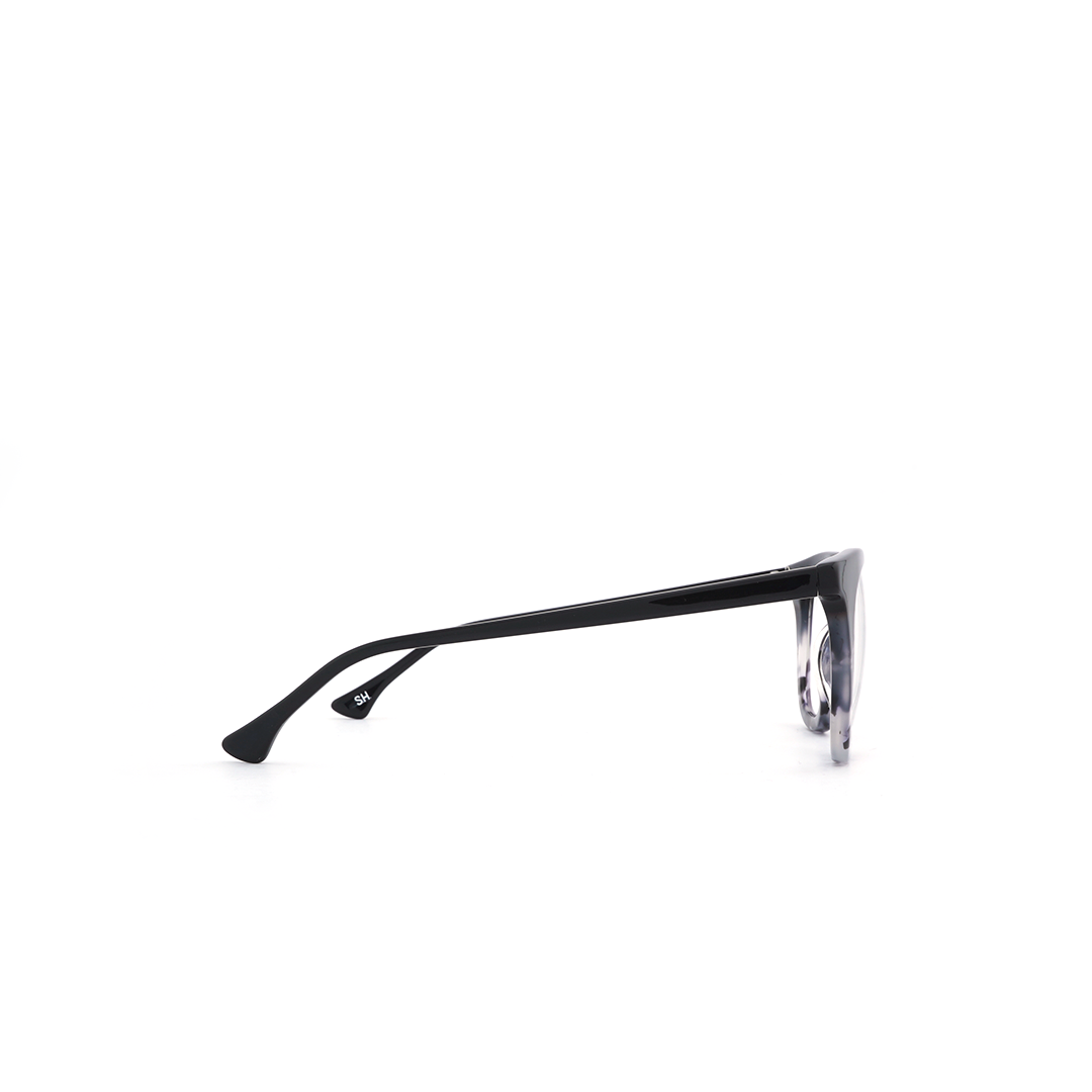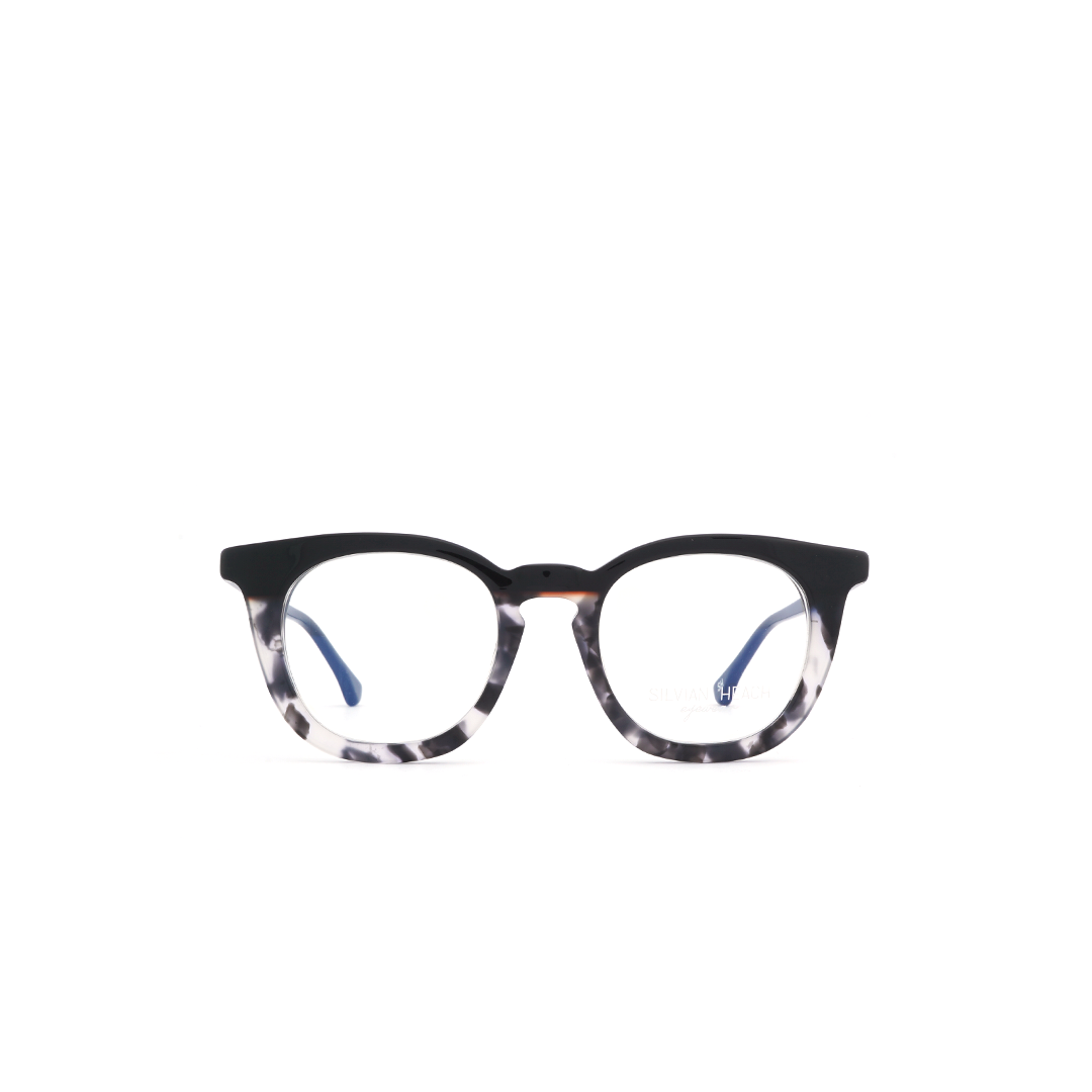 Armazón tipo wayfarer en color negro y detalles en blanco, hecho a mano en Italia.