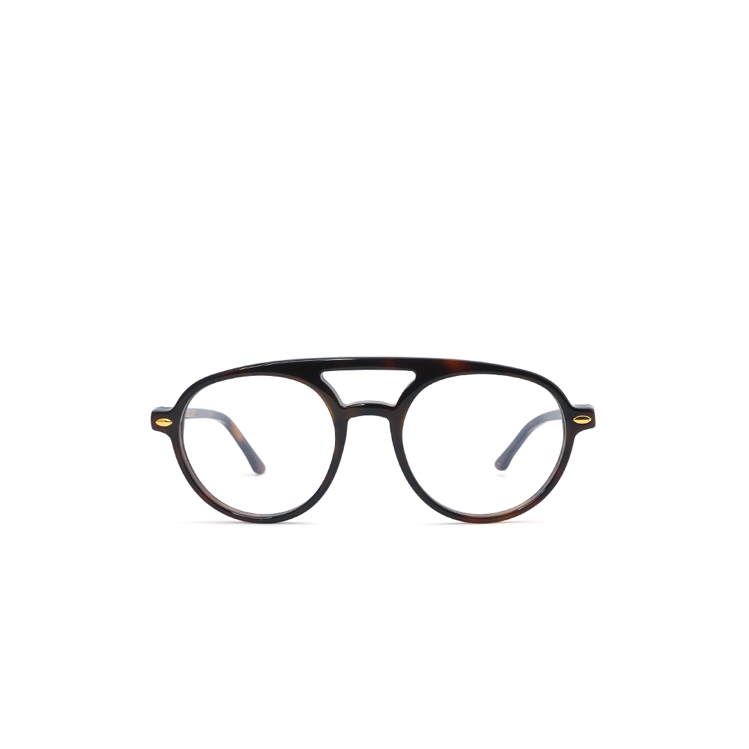 Armazón redondo en color negro con café, hecho a mano en Italia.