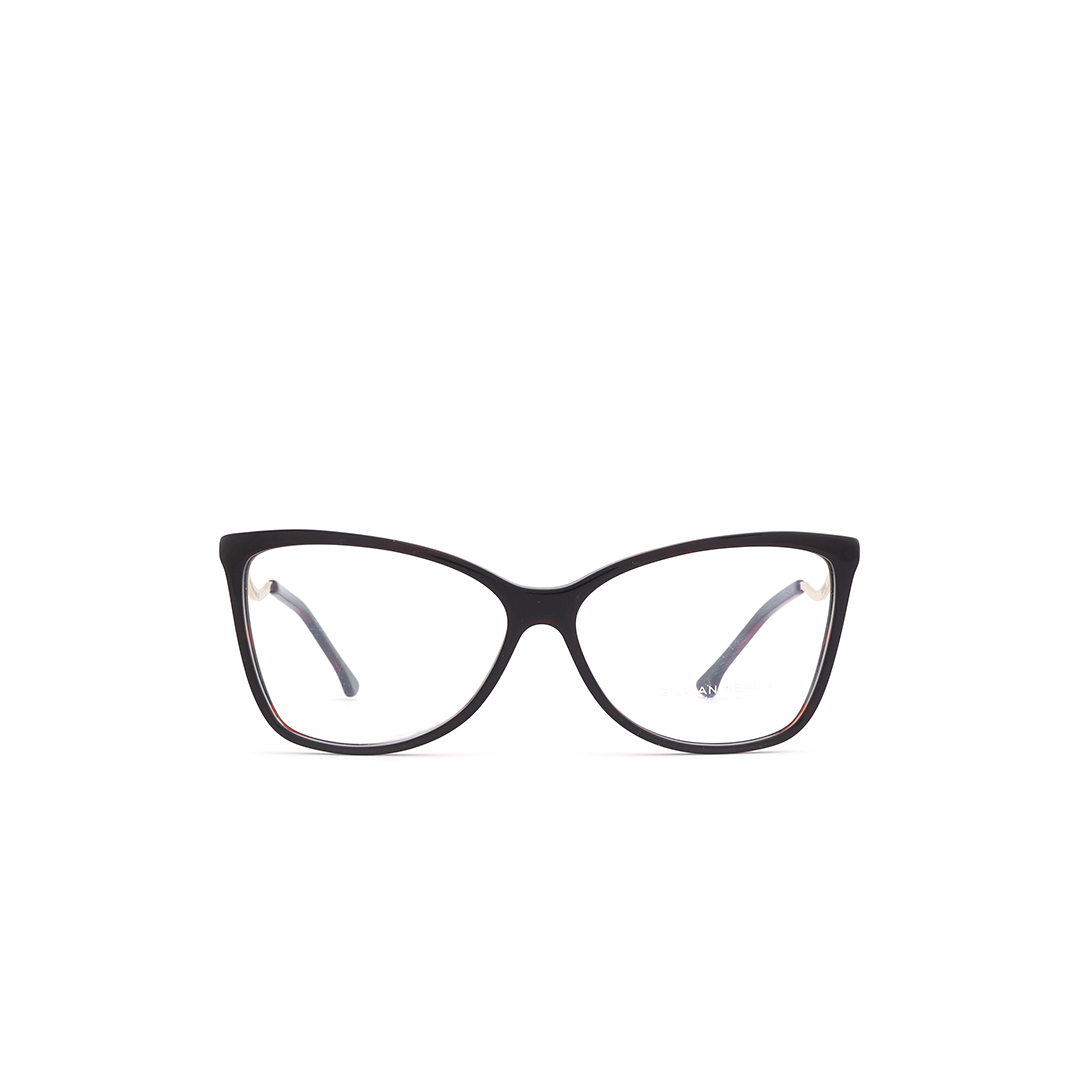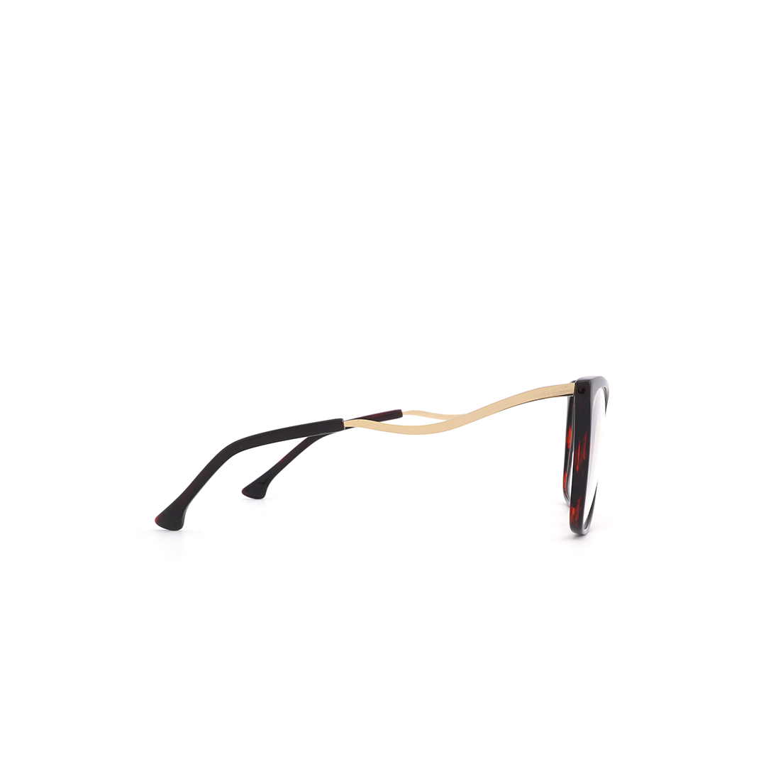 Armazón tipo “cat eye” en color negro con detalles en rojo y dorado, hecho a mano en Italia.