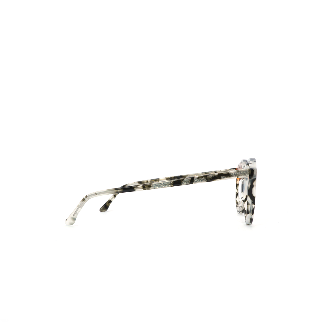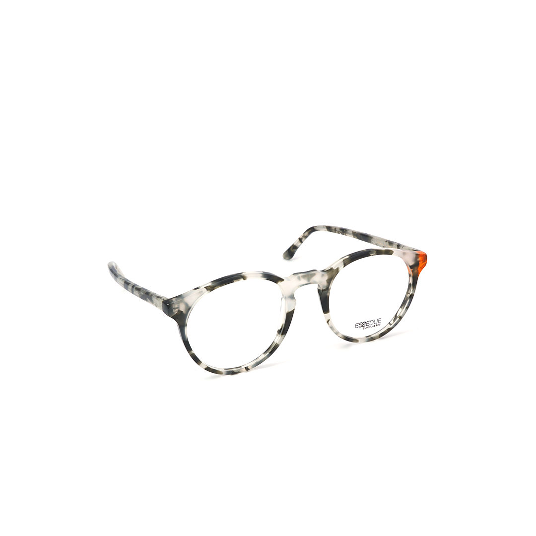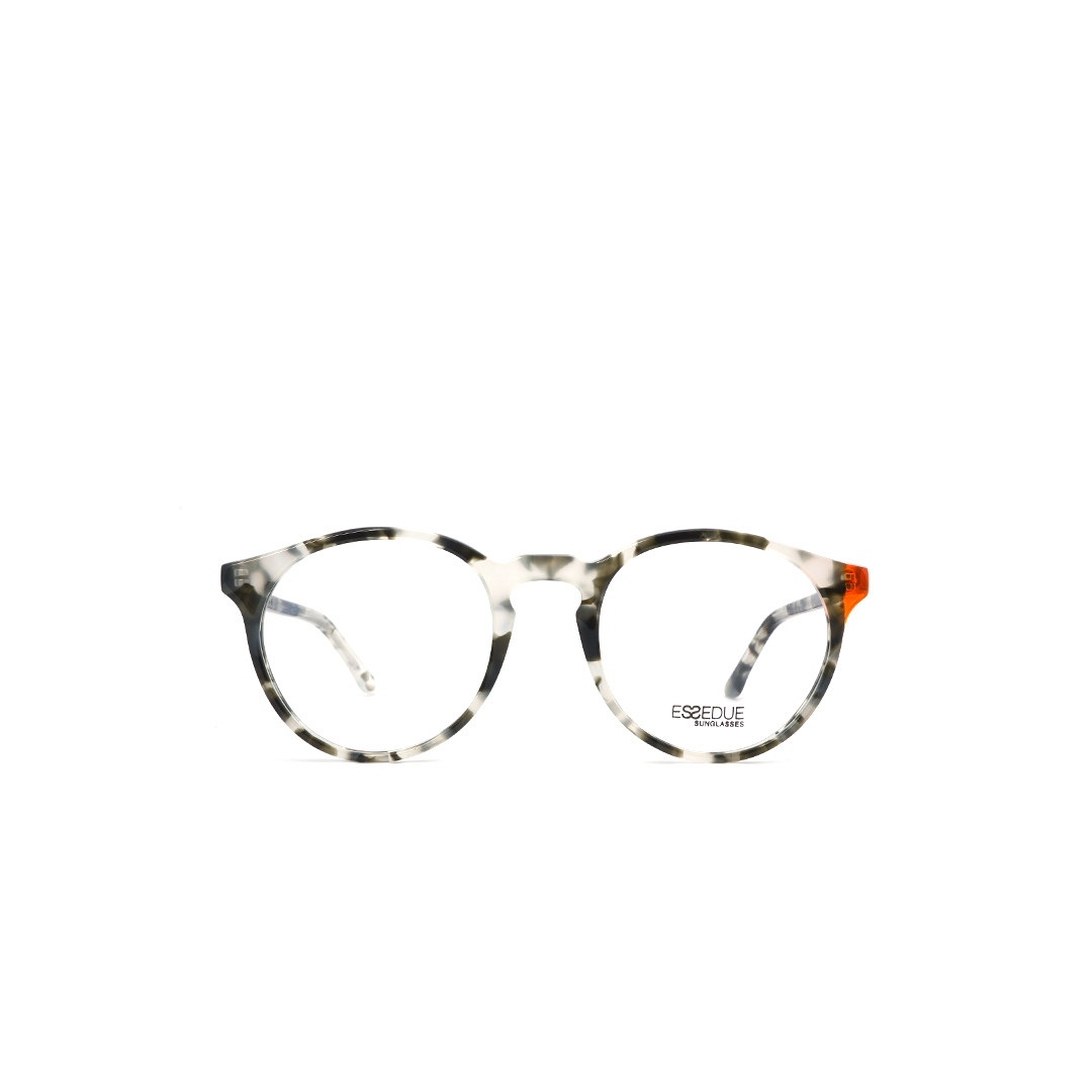 Armazón redondo en color tortoise-gris y detalle naranja, hecho a mano en Italia.