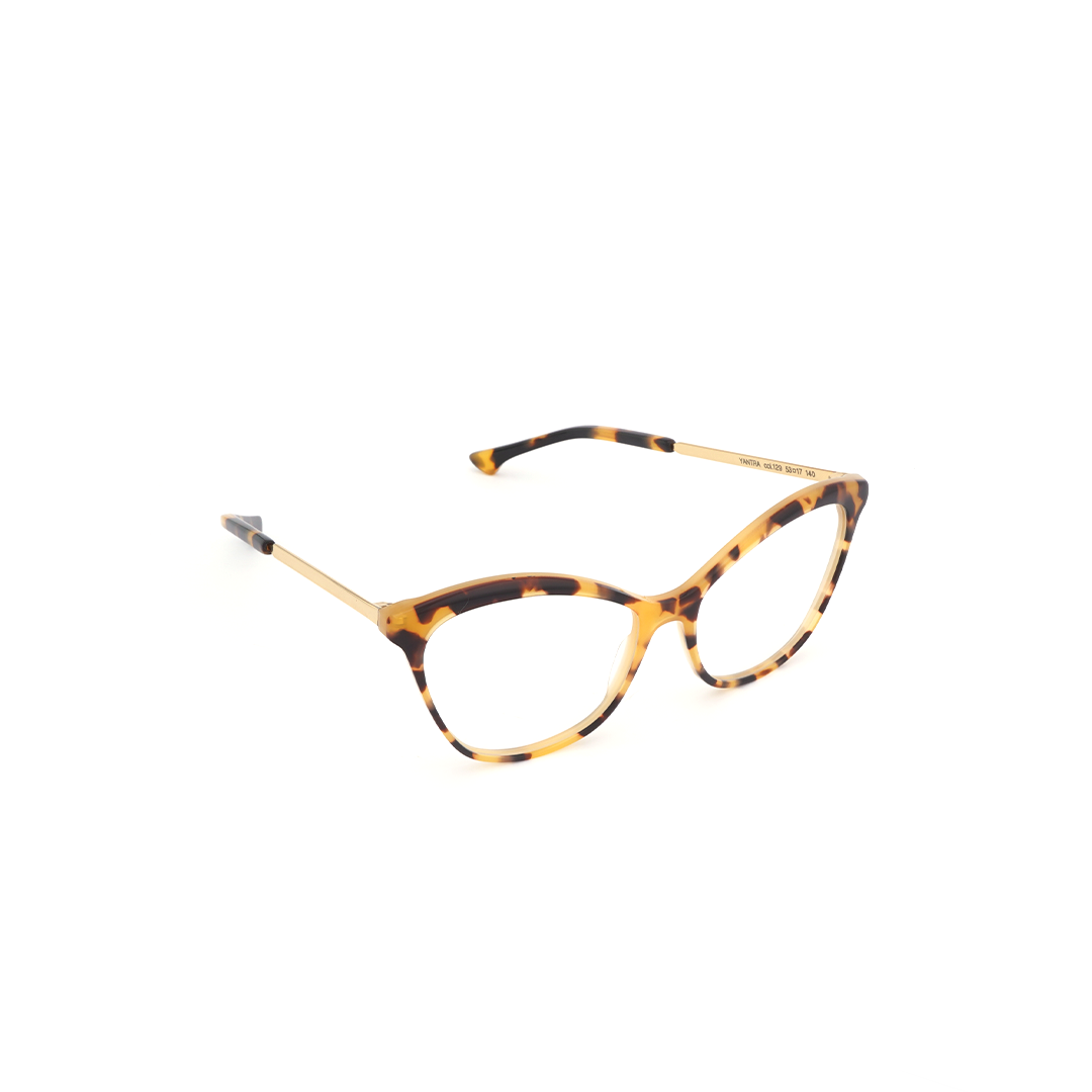 Armazón tipo “cat eye” en color tortoise-amarillo, hecho a mano en Italia.
