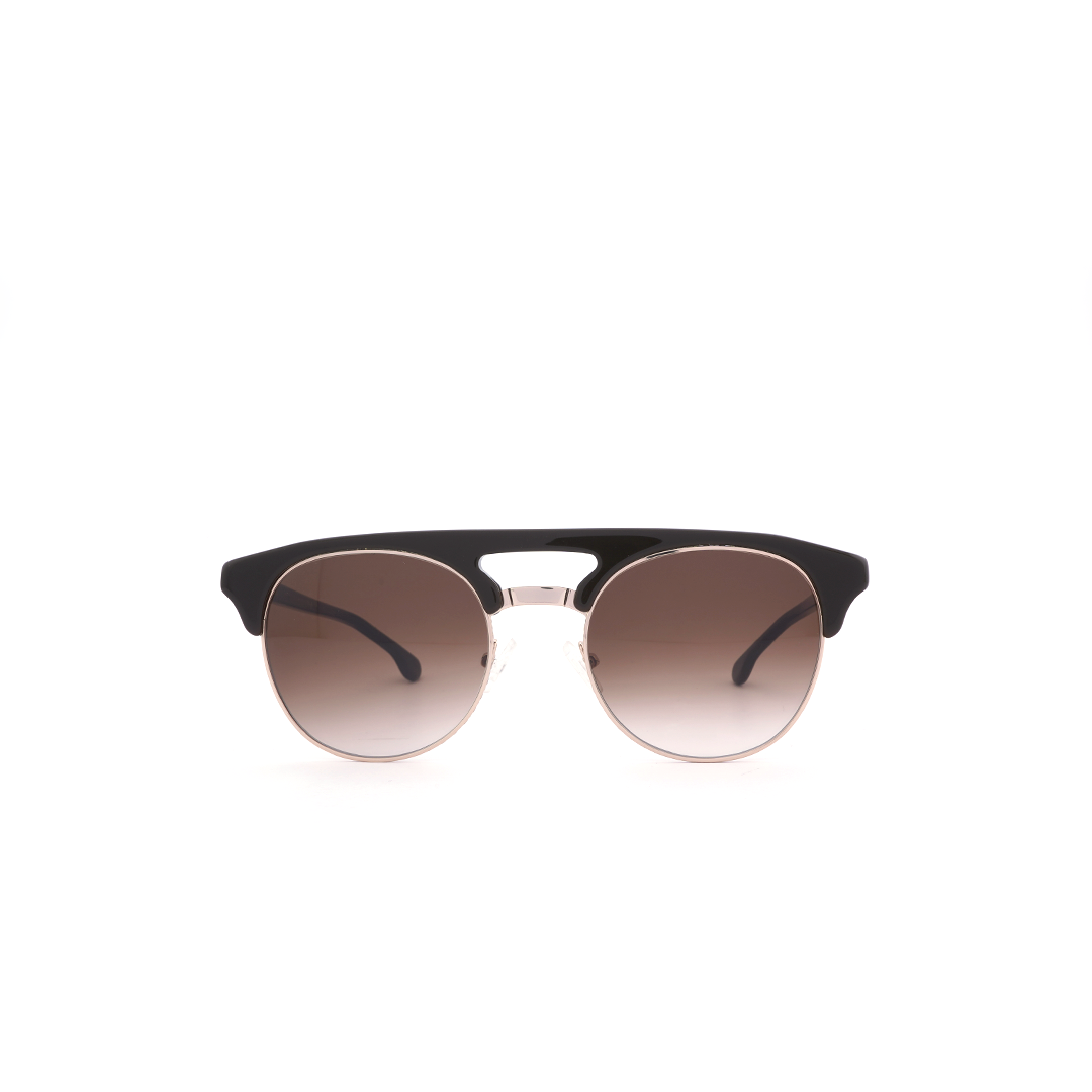 Lentes de sol en color negro, con lente café oscuro circular, hecho a mano en Italia.