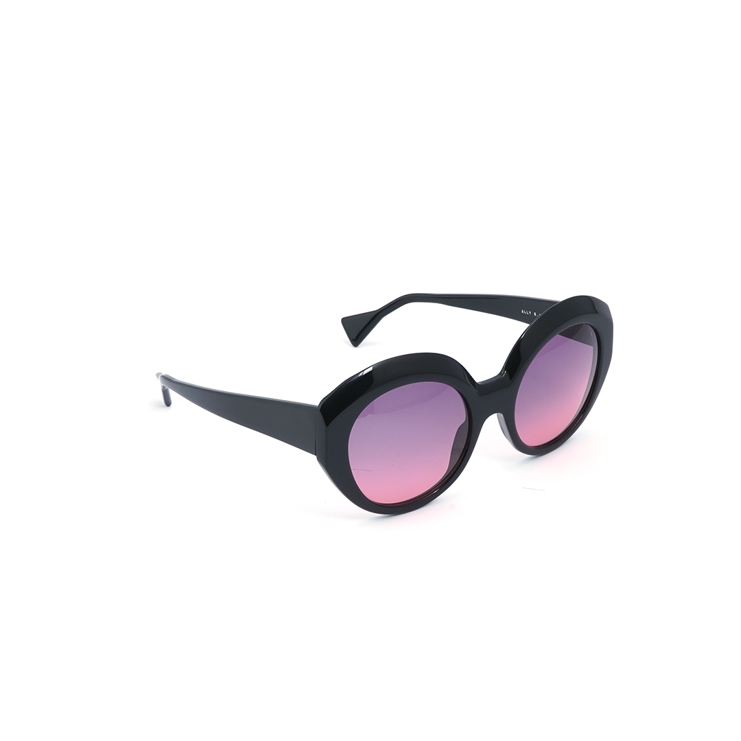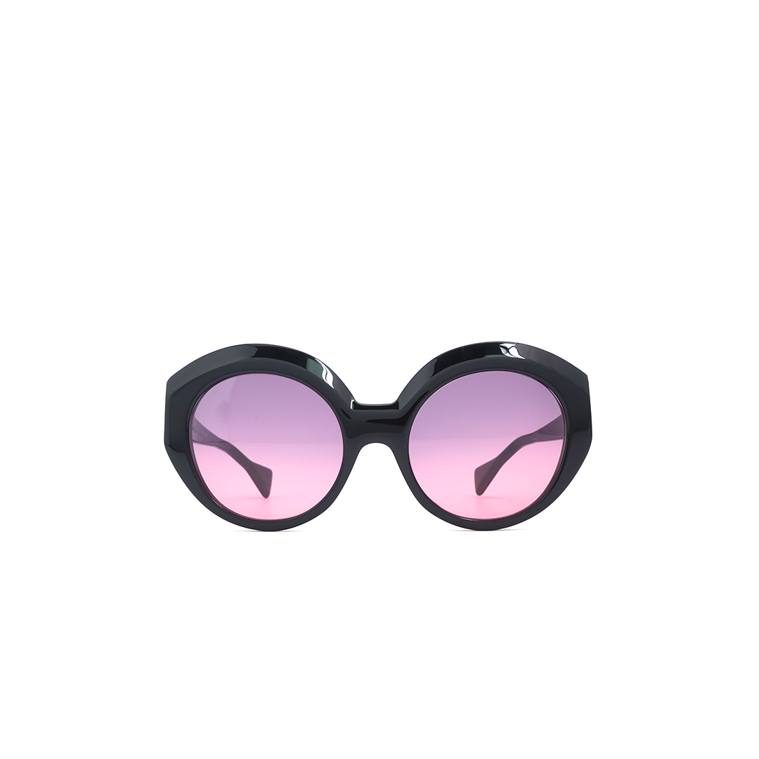 Lentes de sol circulares en color negro y lente purpura, hecho a mano en Italia.