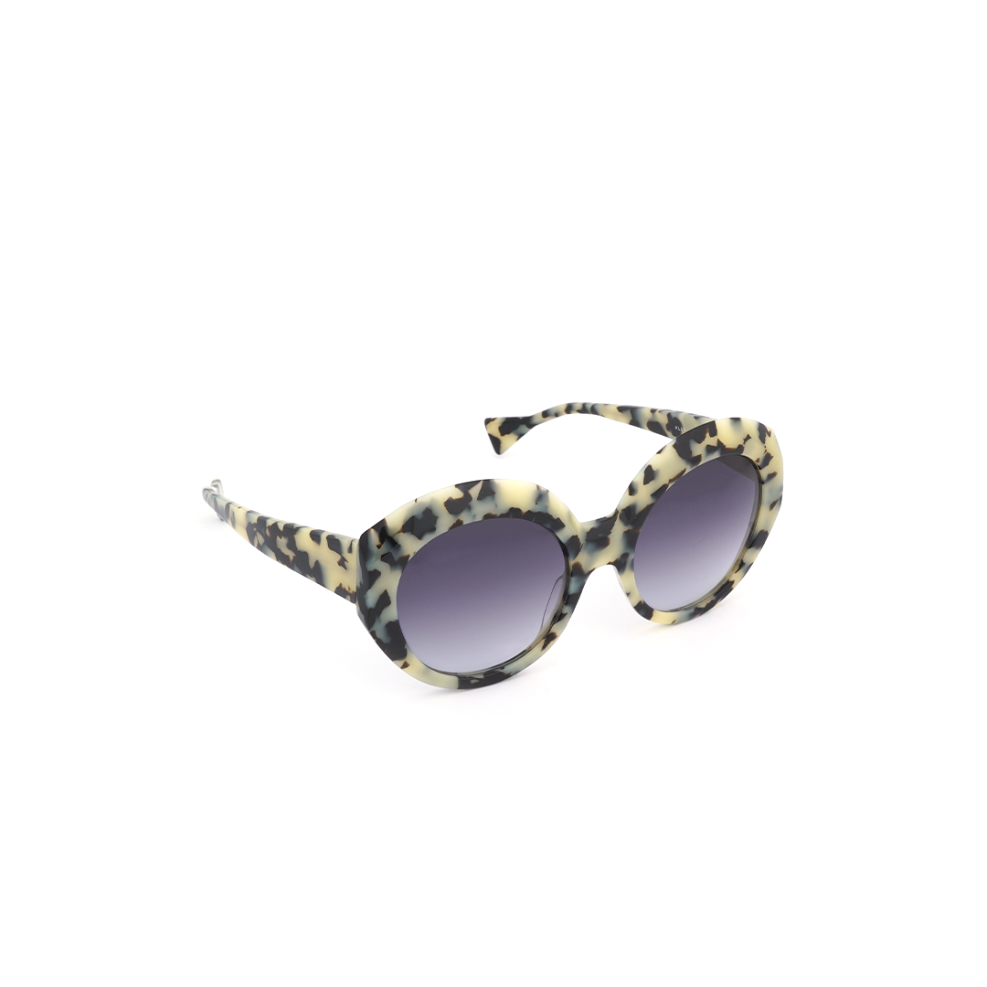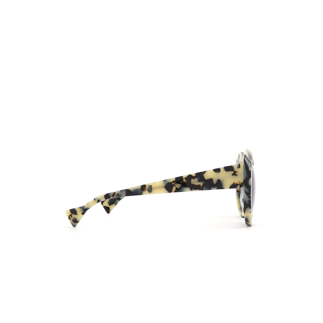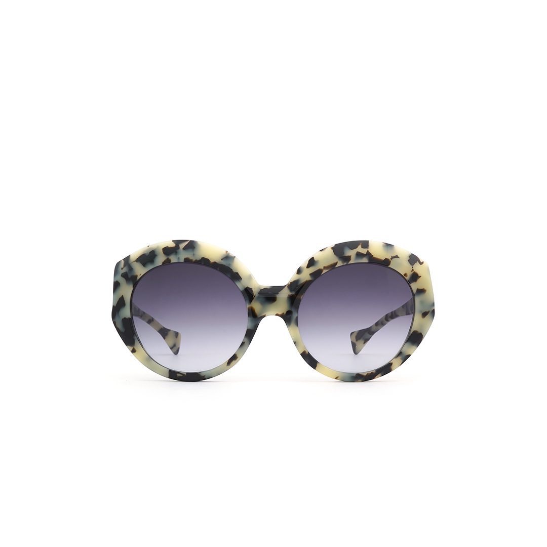 Lentes de sol circulares en color tortoise-amarillo y lente negro, hecho a mano en Italia.