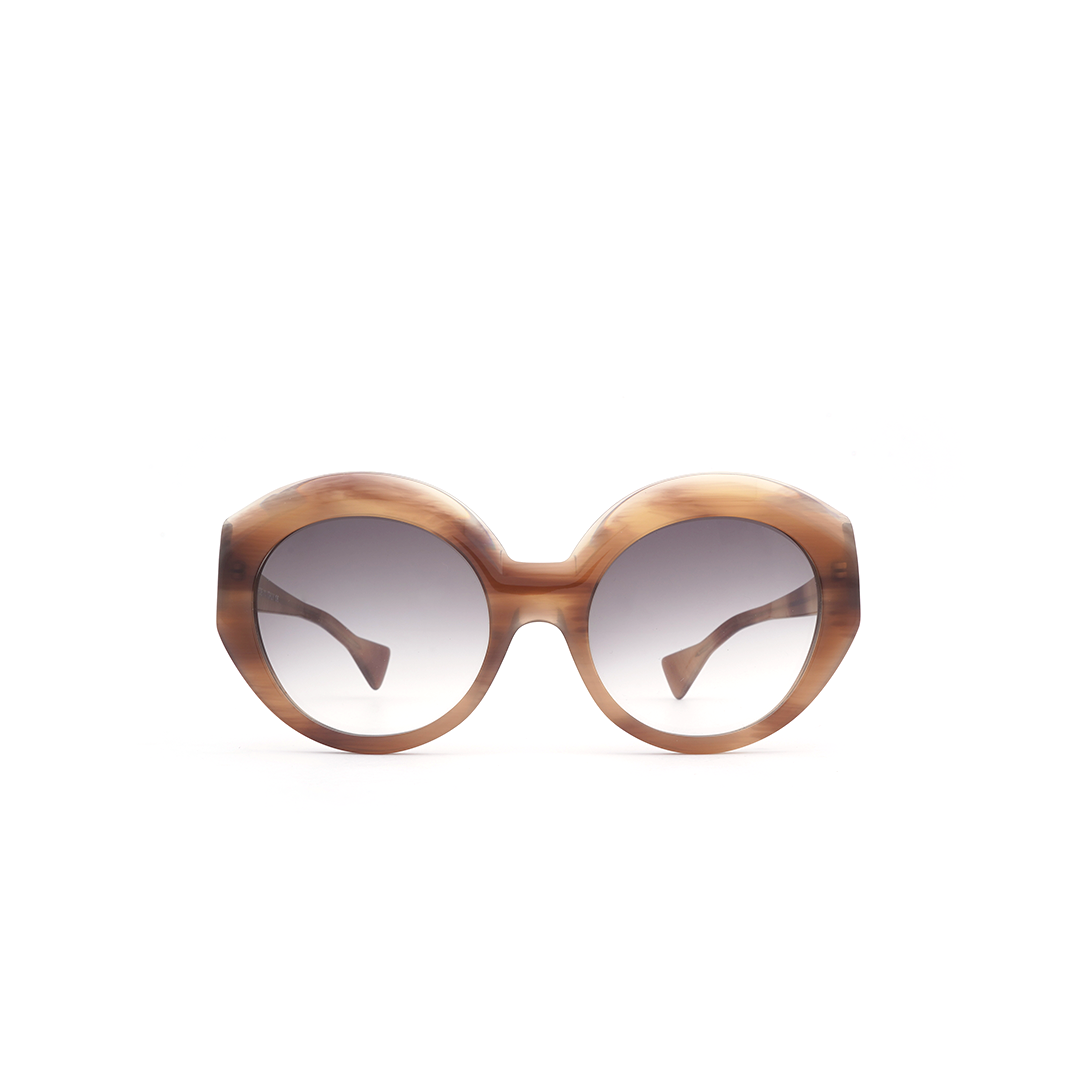 Lentes de sol circulares en color ámbar, hecho a mano en Italia.