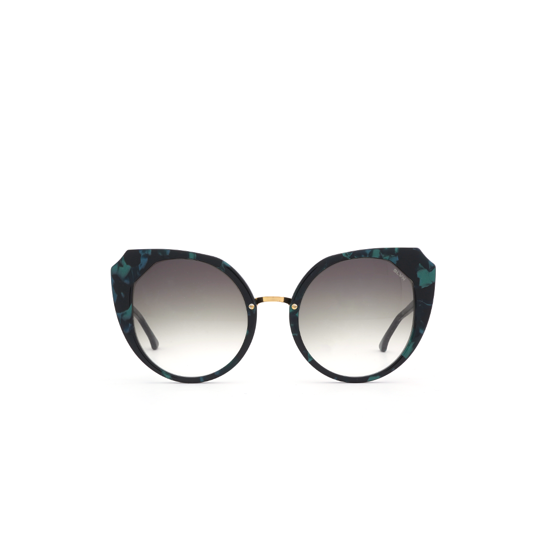 Lentes de sol tipo “cat eye” en color tortoise-verde, hecho a mano en Italia.