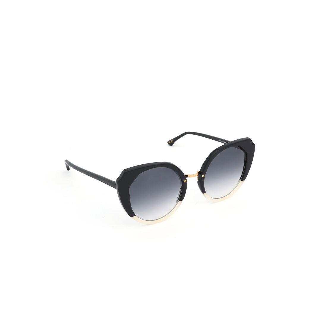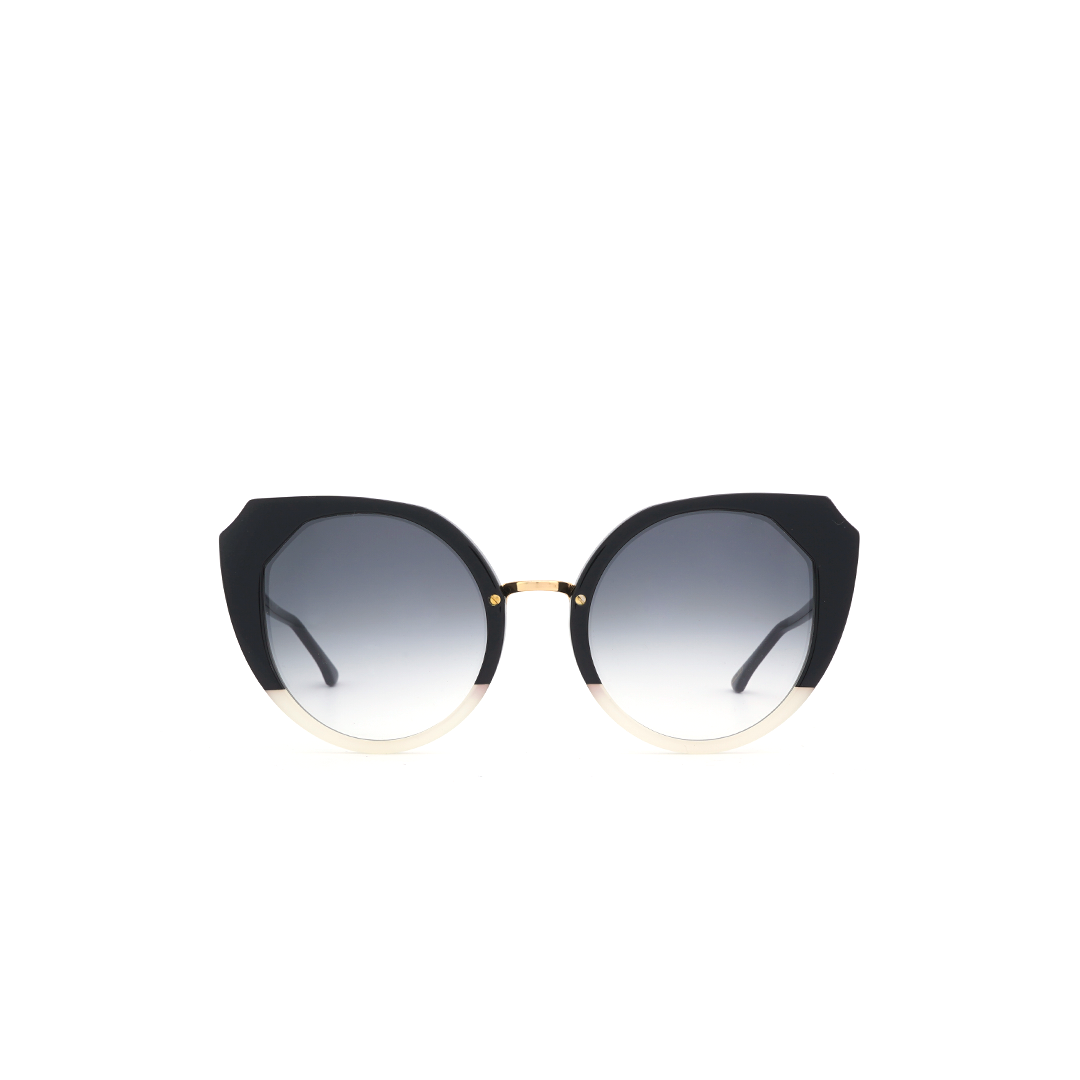 Lentes de sol “cat eye” en color negro y blanco, hecho a mano en Italia.