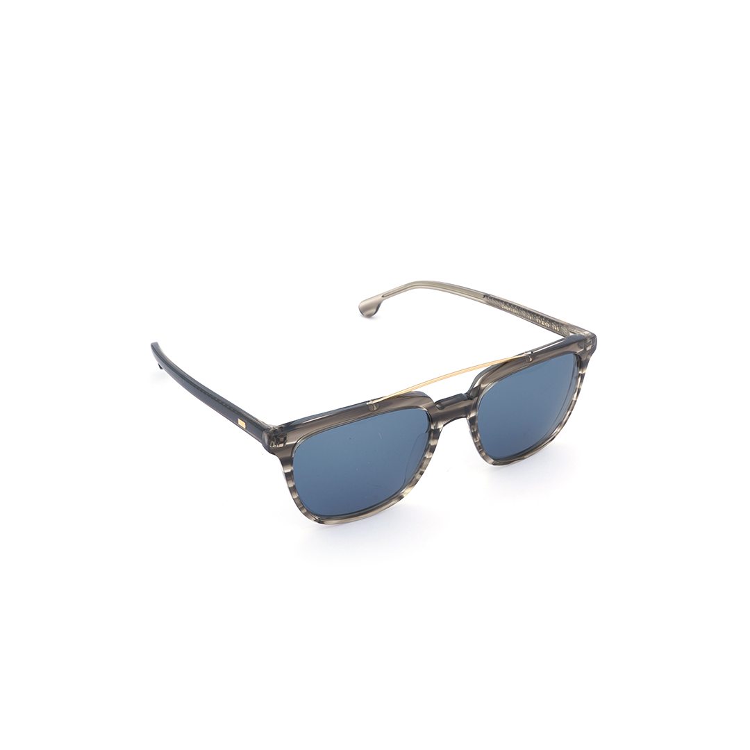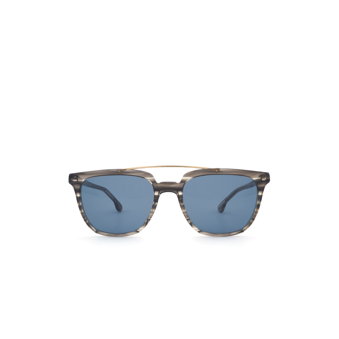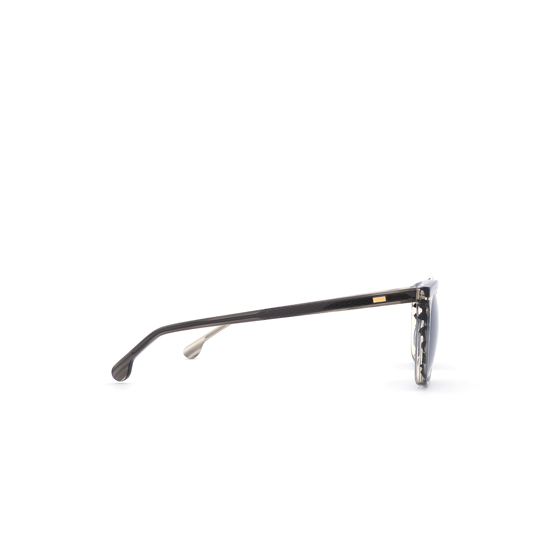 Lentes de sol en color gris transparente, con detalle dorado, hecho a mano en Italia.