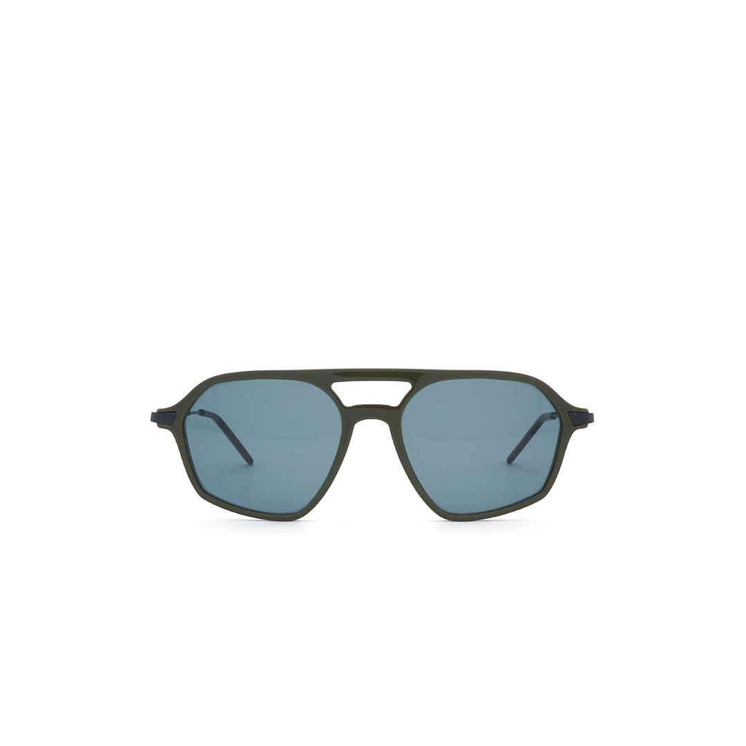Lentes de sol tipo “pentágono” en color verde con lente gris, hecho a mano en Italia.