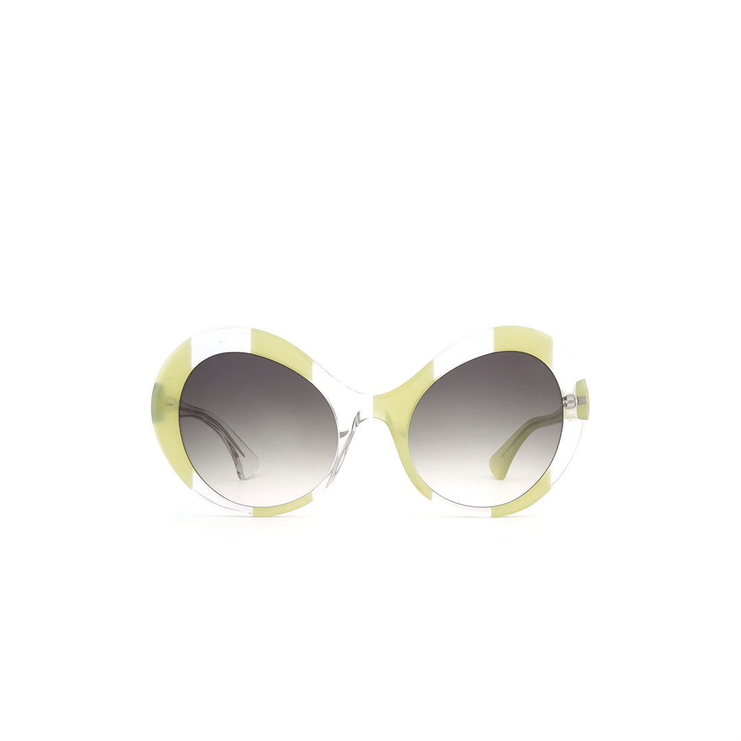 Lentes de sol circulares en color amarillo y transparente, hecho a mano en Italia.