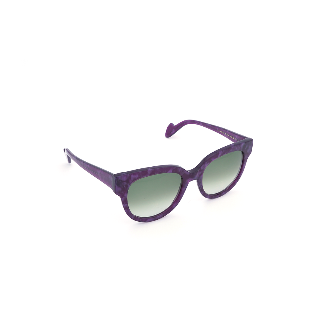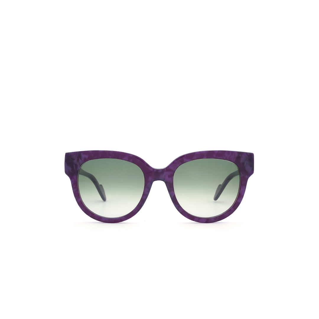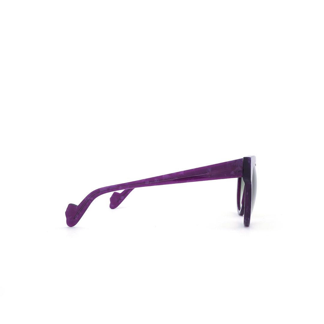 Lentes de sol en color tortoise-purpura con mica negra, hecho a mano en Italia.