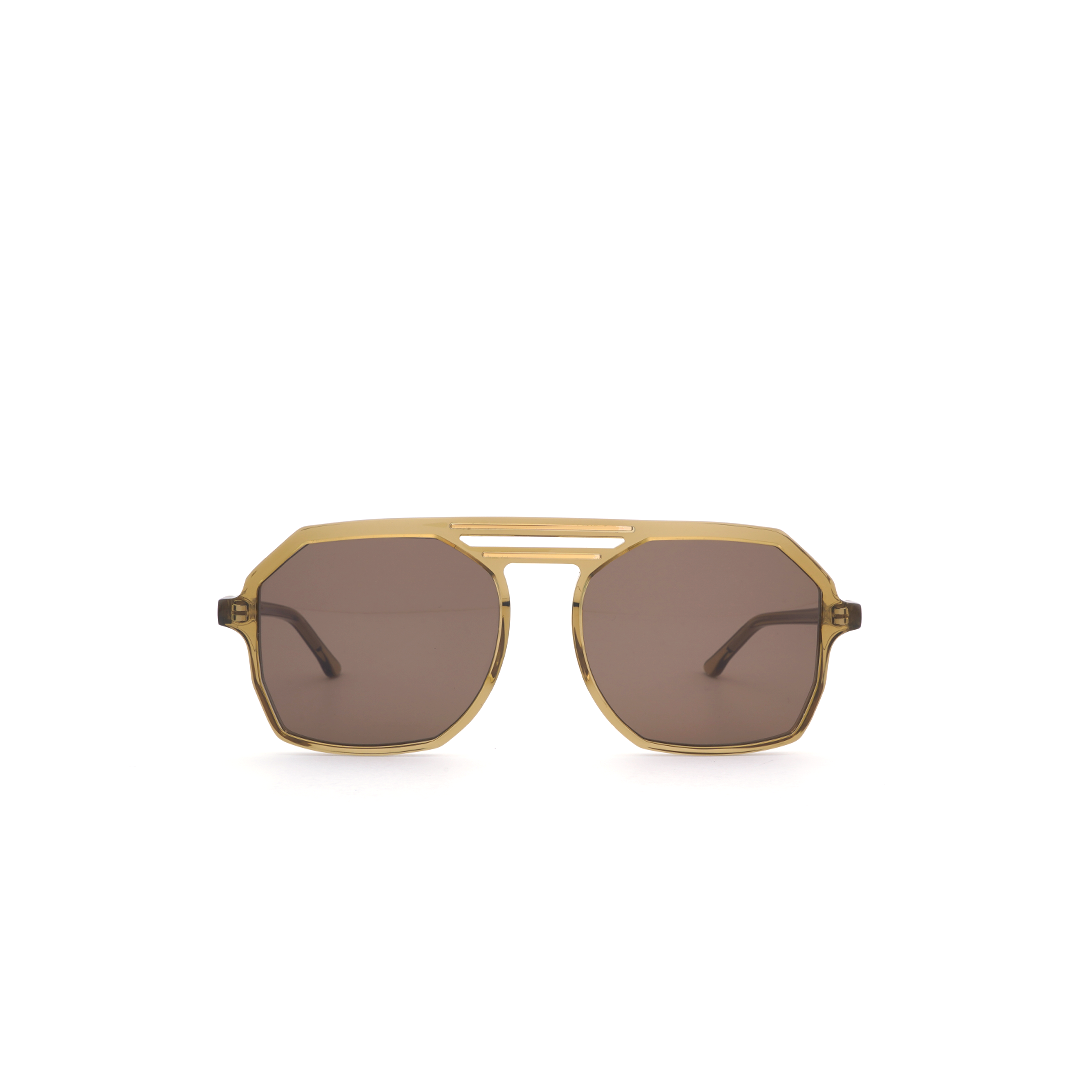 Lentes de sol tipo “geometric” con doble puente en color dorado y lente café, hecho a mano en Italia