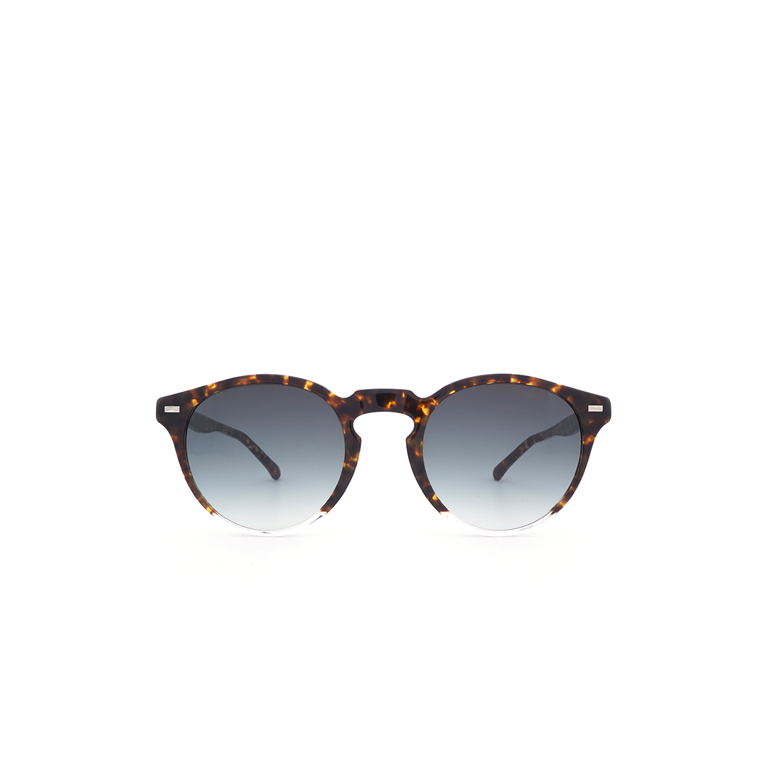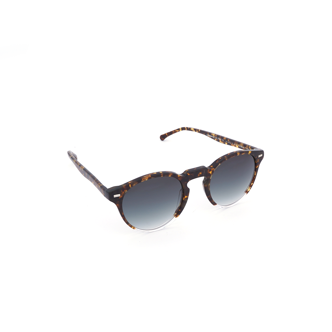 Lentes de sol redondos en color tortoise-café y lente negro, hecho a mano en Italia.
