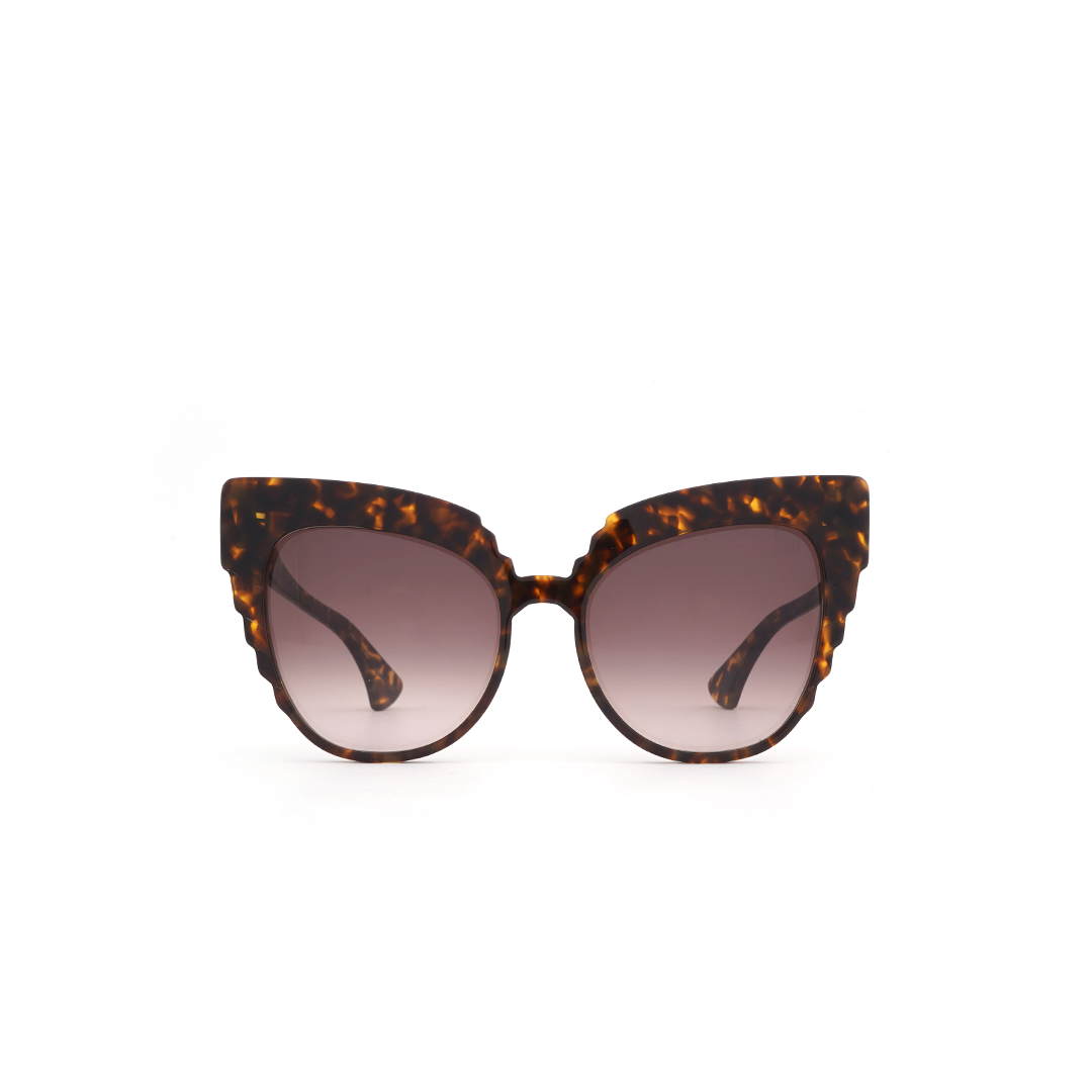 Lentes de sol tipo “mariposa” en color negro con detalles dorados y lente negro, hecho a mano en Italia.