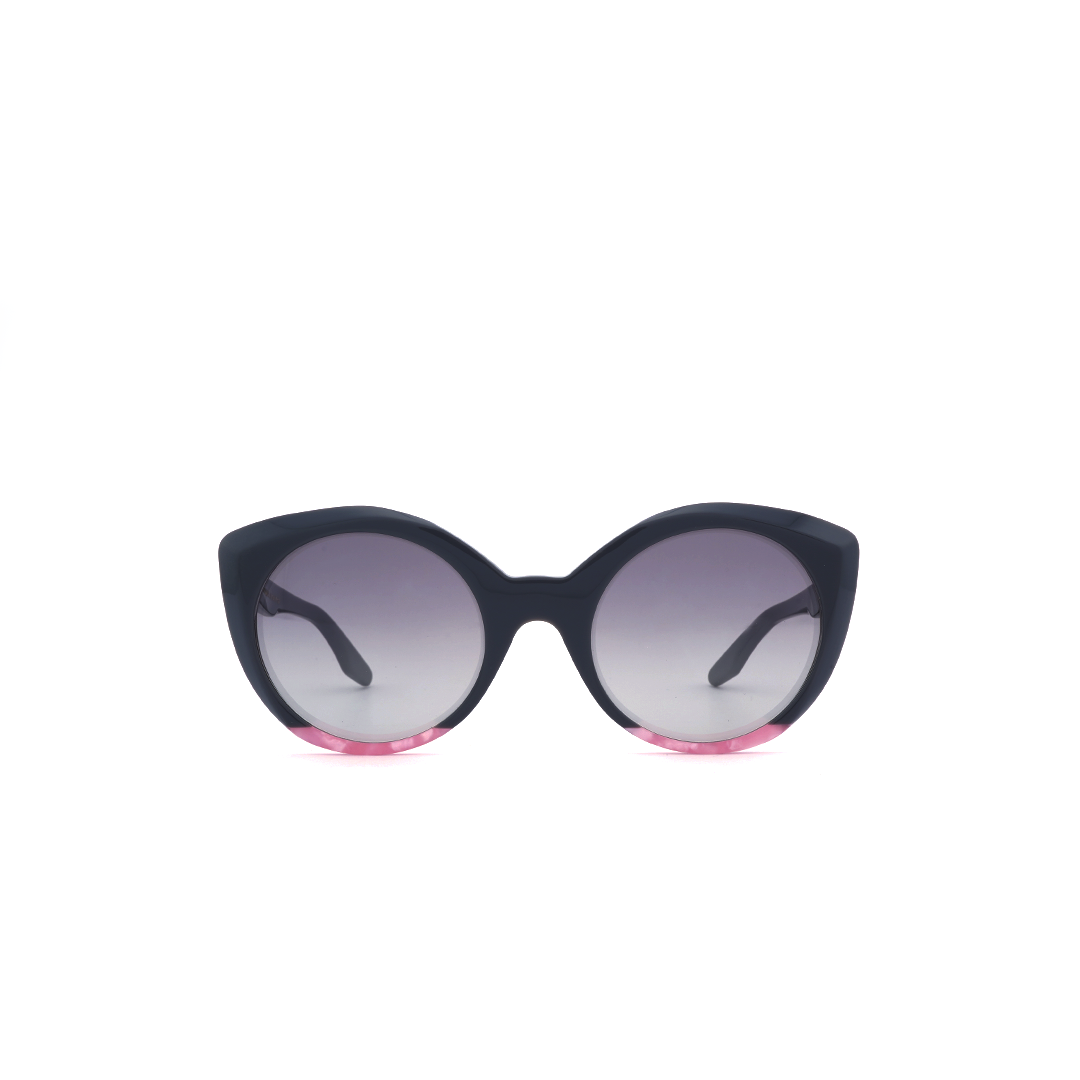 Lentes de sol circulares en color negro con rosa y lente oscuro, hecho a mano en Italia.