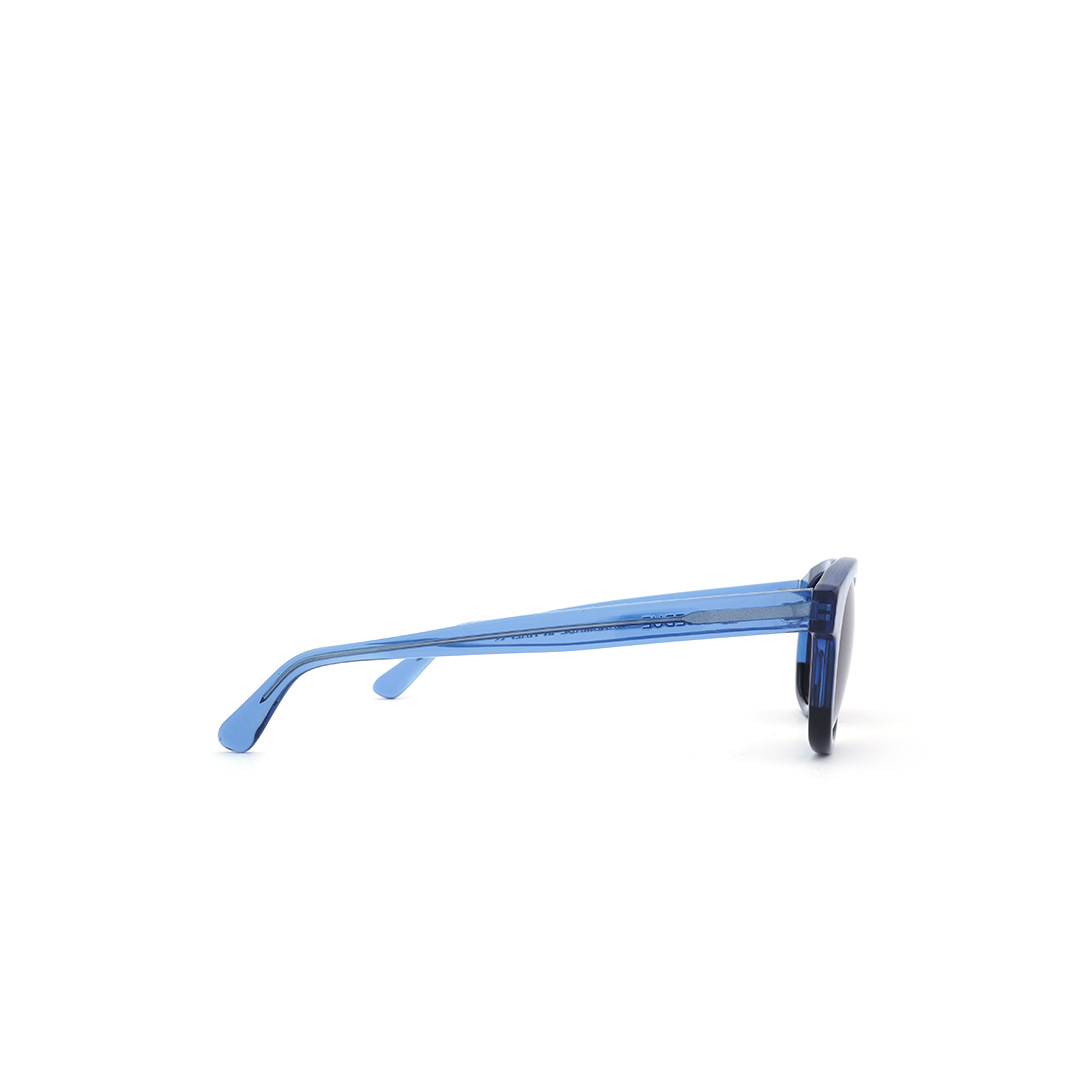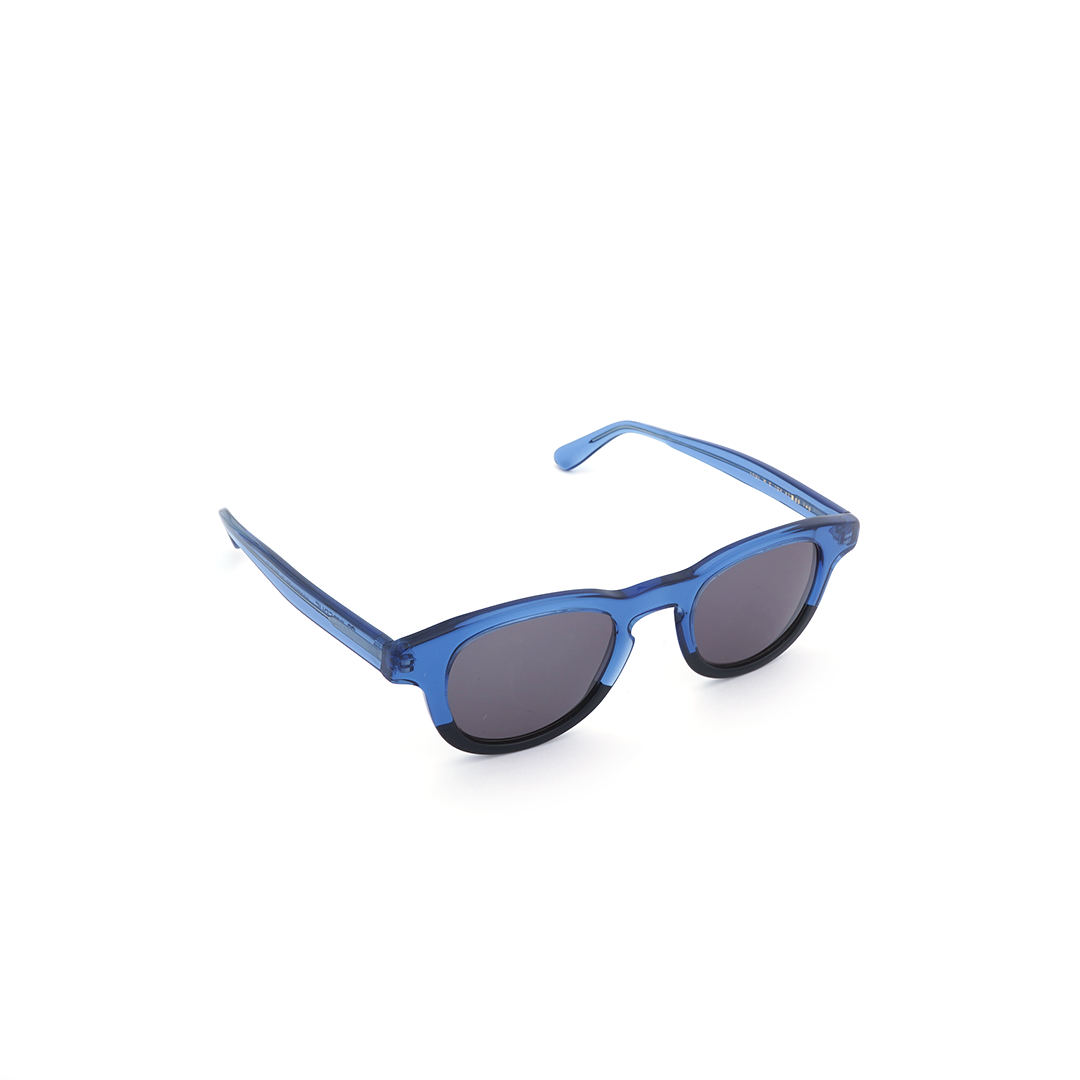 Lentes de sol tipo “wayfarer” en color azul con detalle negro, hecho a mano en Italia.