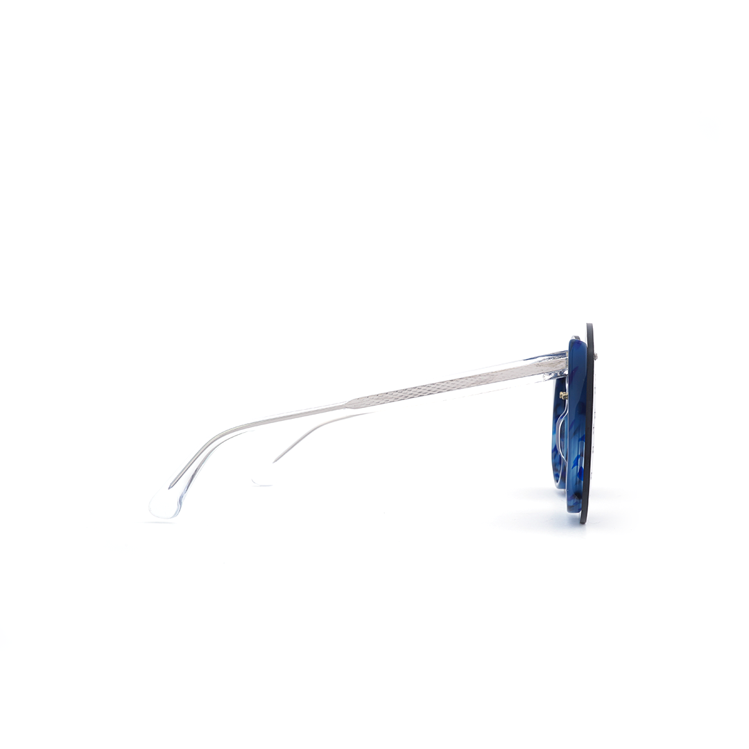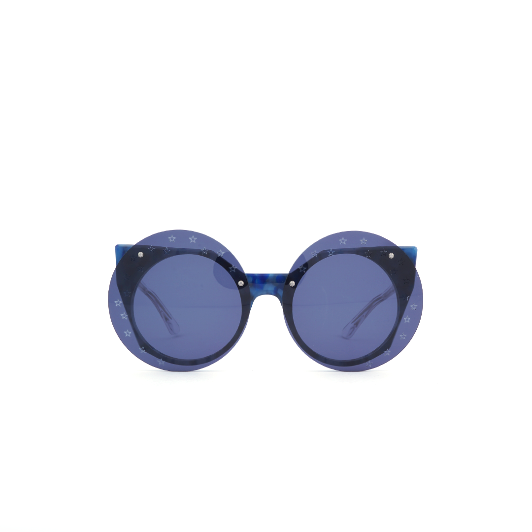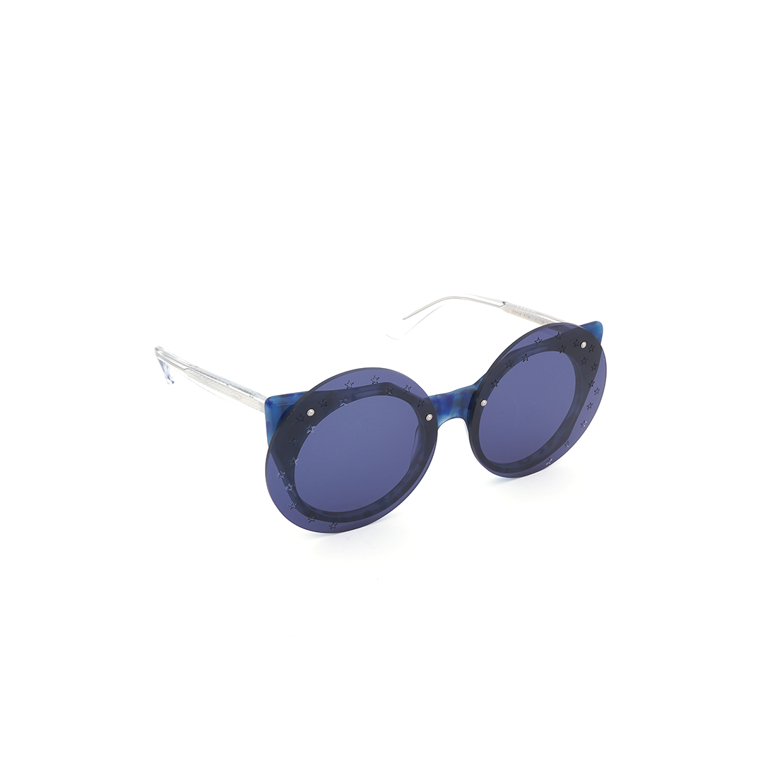 Lentes de sol circulares con diseño “cat eye” en color azul con detalles en forma de estrella, hecho a mano en Italia.