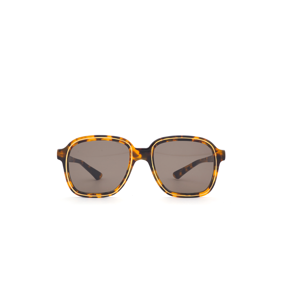 Lentes de sol cuadrados en color tortoise-café y detalle en dorado, hecho a mano en Italia.