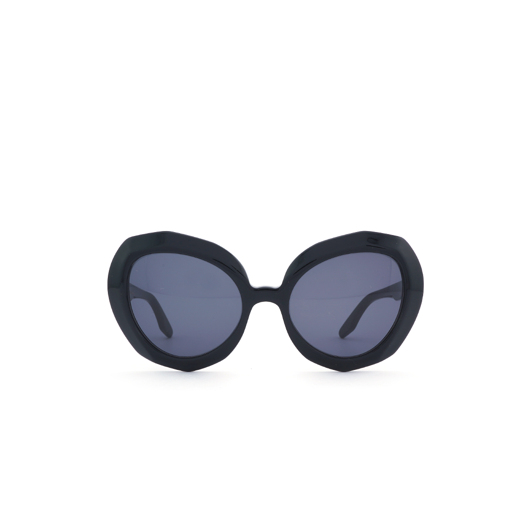 Armazón tipo “cat eye” en color negro con lente oscuro, hecho a mano en Italia.
