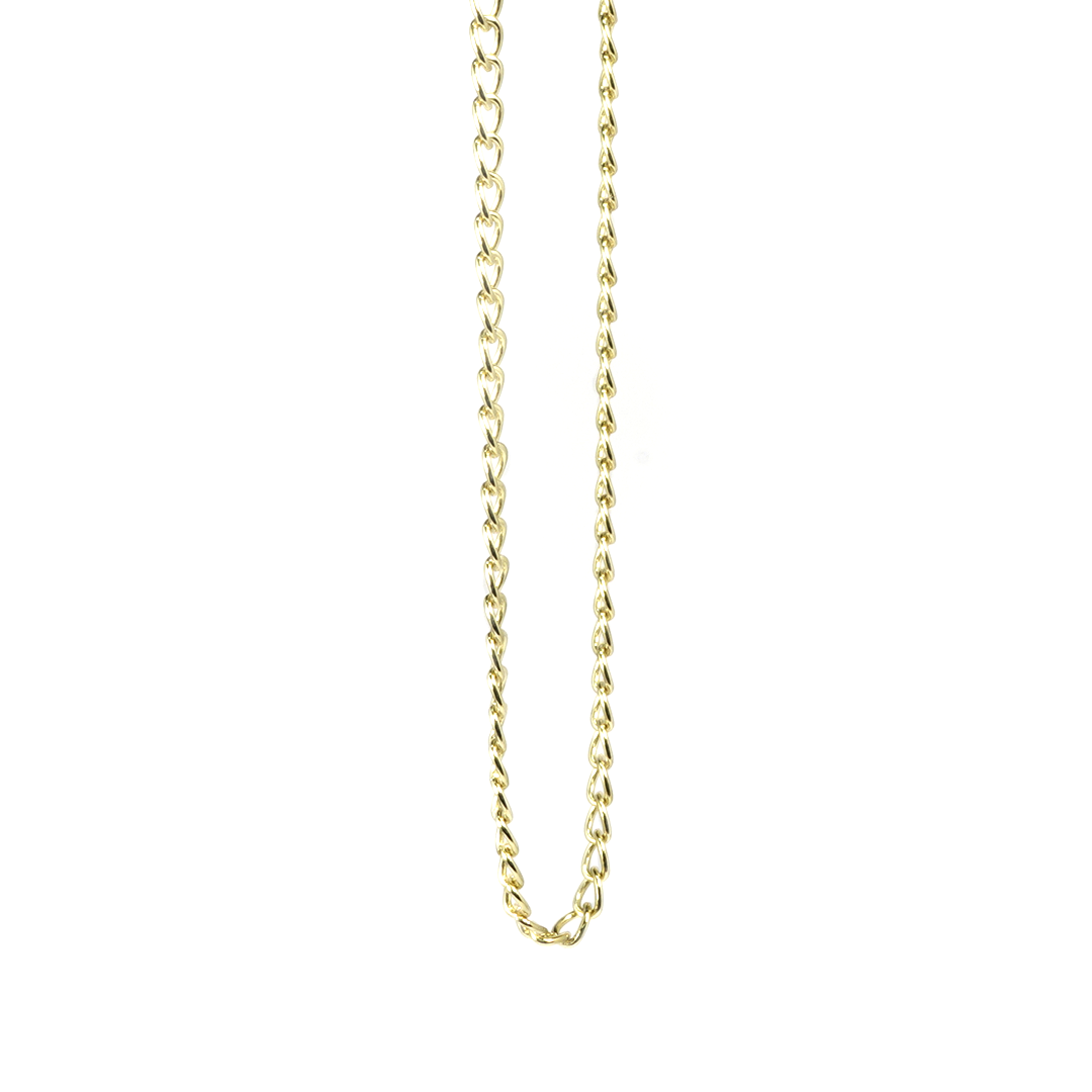 $375.00Collar de hierro dorado con detalles rojos en cadena y dije en forma de colmillo cuadriculado en tonos cafés y terracota.